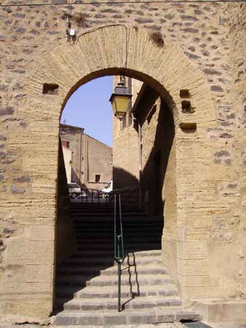 Nous sommes sûrs, grâce aux archives, que le village était déjà fortifié en 1161. Porche de l'ancienne école libreLe rempart enserre le fort et les habitations ordonnées en cercles recoupés par trois axes principaux (la rue de l'Évêché, la rue Grimaud et la rue Émile Zola). A partir du XIXème siècle des habitations se sont construites contre et à l'extérieur du mur de ville, dissimulant en partie un ensemble pourtant considérable.